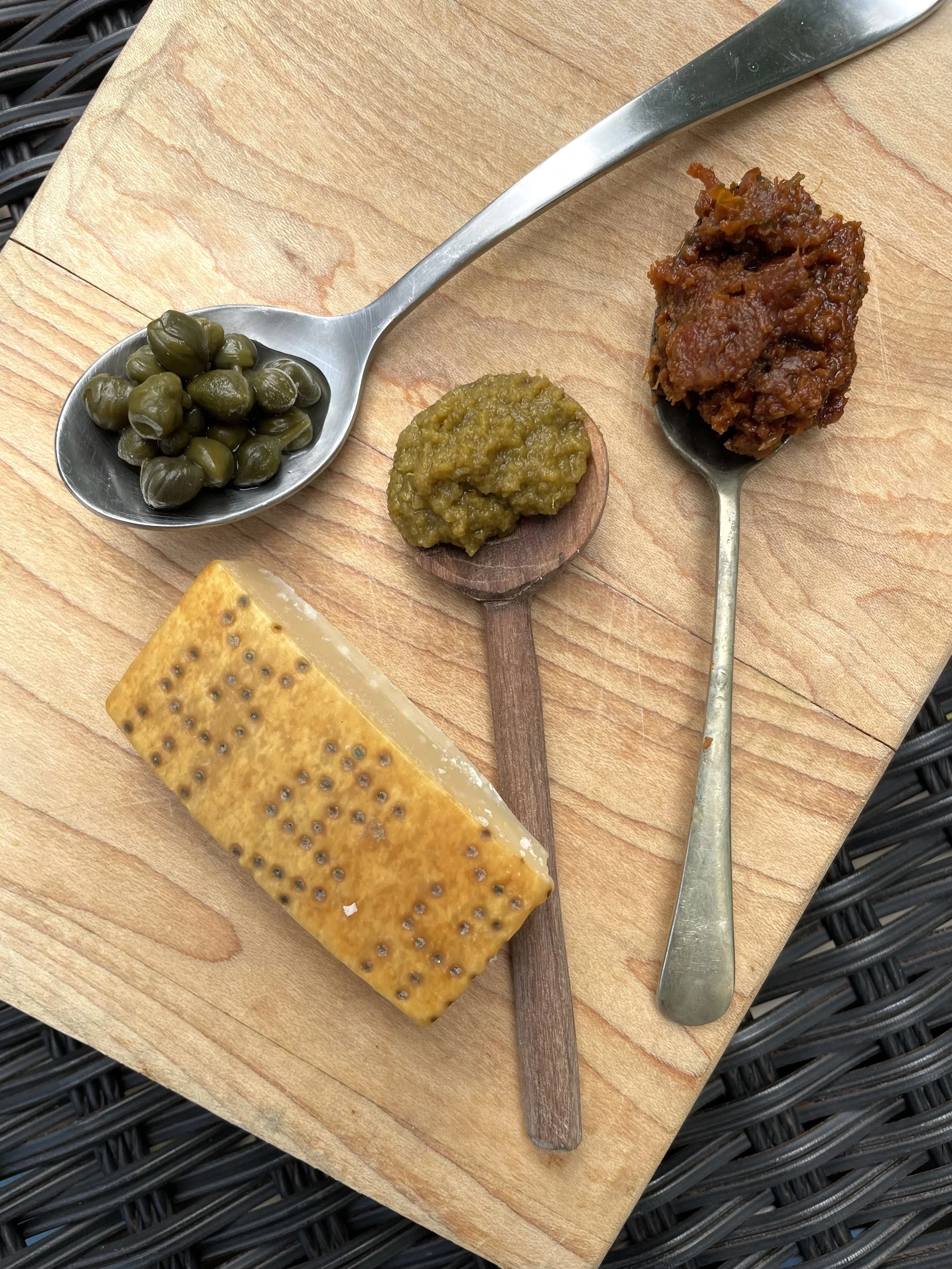 Something Different You can think outside the (ice) box and use dried chiles, Parmesan rinds, capers, peppercorns, jarred roasted red peppers and cured meats in your aromatic layer. I have a friend who adds a chunk of pepperoni to the onions and garlic in her Italian Sunday sauce, making a piece of salty, fatty meat into part of her layers, before stirring in tomatoes. It’s irresistibly good.